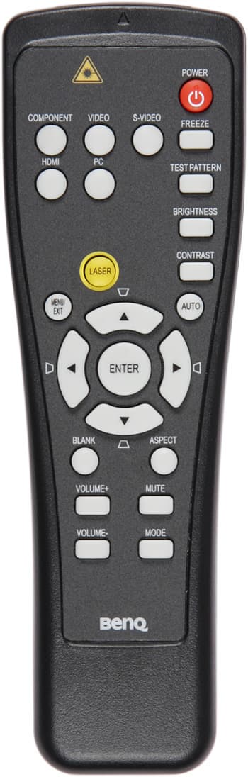 Корпус пульта изготовлен из матово-черного пластика. Большинство кнопок не крупные и имеют очень мелкие подписи. Блоком курсорных кнопок пользоваться удобно. Пульт оснащен встроенной лазерной указкой, включающейся желтой кнопкой LASER.