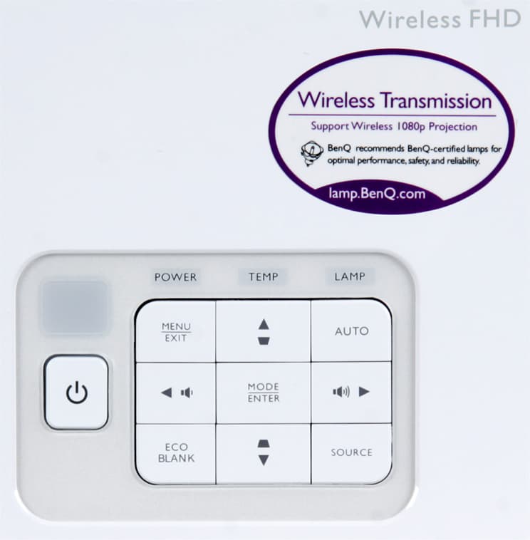 Подключение к источнику сигнала в беспроводном режиме потребует от пользователя минимум усилий — достаточно подключить передатчик к HDMI-выходу источника, сам передатчик обеспечить питанием, например с помощью комплектного адаптера, и выбрать на проекторе источник Wireless. Возможно, придется подождать некоторое время, пока проектор и передатчик найдут друг друга и согласуют параметры передачи, и готово — проводов нет, а изображение в наличии. Впрочем, такая простота обеспечивается при повторном подключении так как при первом, возможно, потребуется выполнить относительно сложную процедуру синхронизации, включающую в себя многокнопочные комбинации на пульте ДУ, нажатие на кнопку на передатчике и даже перезапуск проектора. Заявлено, что беспроводная передача возможна на расстоянии от 0 до 8 м (в идеальных условиях), поддерживается сигнал до 1080p при 60 кадр/с и с 3D 1080p с упакованными кадрами при 24 кадр/с, а максимальное потребление передатчика составляет 3 Вт (5 В при 0,6 А).