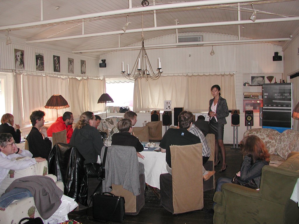 В продолжение чаепития гостям были розданы анкеты, в которых предлагалось ответить на десяток вопросов по истории и технологиям B&W. Вопросы были не самые простые, поэтому призы (фирменные рубашки с логотипом B&W и компакты с музыкой) нашли лишь двух героев, правильно ответивших почти на все вопросы. Остальные же дружно и от души посмеялись над ответами друг друга, благо Александра Иванова сжалилась (именно она сквозь смех зачитывала вслух ответы в анкетах) и не называла фамилий людей, над ответами которых дружно гоготало всё кафе.
