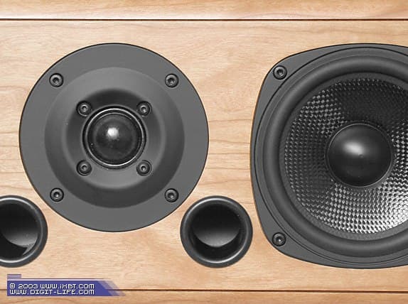 За воспроизведение низких и средних частот отвечает драйвер с металлическим диффузородержателем, 150-миллиметровым диффузором из карбона (тот самый материал, из которого изготавливают сверхлёгкие и очень прочные корпуса болидов F1), фазокомпенсационным пылезащитным колпачком в виде наконечника пули (колпачок полимерный) и экранированной магнитной системой, позволяющей ставить колонку буквально впритык к телевизору на основе ЭЛТ.