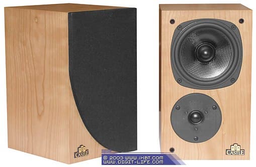 Двухполосная акустическая система полочного типа. Дизайн передней панели можно было бы назвать классическим, если бы не свокбразная форма защитной решётки (это фирменная черта почти всех колонок Castle), а также «перевёрнутое» расположение динамиков, когда «пищалка» находится под НЧ/СЧ драйвером. К тому же, высокочастотные динамики смещены немного в сторону, причём на левой и правой АС сделано это зеркально. Пользователь может выбирать по своему вкусу, как расположить АС: ВЧ динамиками наружу или внутрь, тем более, что никакой маркировки, говорящей о том, правая или левая это колонка, нет. Однако, во время прослушивания мы ставили АС так, как можно увидеть на фотографии — то есть, ВЧ драйверы были «внутри» стереобазы. Ещё один немаловажный момент — фронтальный порт фазоинвертора, позволяющий при необходимости ставить колонку довольно близко к стене или даже в нишу.