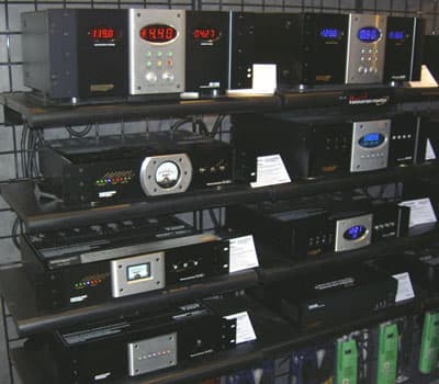 Редкие High-End фирмы не опасались показать внутренности своих аппаратов в открытом виде. Для большинства посетителей это было демонстрацией качества сборки, которое всегда в подобных случаях на высоте — иначе нет смысла открывать аппарат. Но для человека, занимающегося коллекционированием типов различных микросхем, примененных в современных процессорах, ресиверах и DVD плеерах, это ценная информация, которая еще раз подтверждала предположение о том, что в High-End устройствах применяется фактически та же элементная база, что и в массовых топ — ресиверах, причем иногда и менее современная и с худшим разрешением. Например, в AV-процессоре Audio Analogue Cinecitta: