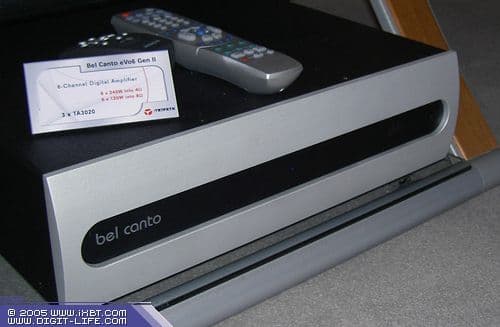 Поскольку цифровые усилители, уже продемонстрировавшие свои возможности на прошлой CES2004, продолжали стремительное развитие в течение всего года и на нынешней CES2005 уже были представлены даже в High-End категории такими компаниями, как Bel Canto (Tripath), NHT (PowerPhysics); а усилитель d2audio впервые в истории цифровых усилителей получил THX Ultra 2 сертификацию, им пришлось уделить особое внимание. О решениях PowerPhysics мы поговорим в следующий раз, вместе с обзором экспонатов компании NHT. Tripath применяется, как мы уже знаем, в профессиональных усилителях Marantz, многие качественные автомобильные усилители используют чипы этой компании в качестве усилителей, они стоят во многих телевизорах. Но вот присутствие таких усилителей в настоящих High-End устройствах, да еще такой известной компании, как Bel Canto, было новостью. В демонстрационной комнате организовали прослушивание звучания системы, в качестве источника использовались Denon 2910, Bel Canto PrePro AV процессор, 6-канальный УМ Bel Canto eVo 6 gen II (3×TA3020 от Tripath) и колонки Meadowlark Shearwater Hot Rod. Звучало все очень прилично, и если качество звука и было лимитировано, то скорее всего аналоговой частью 2910. Что интересно, рок с моего тестового диска звучал динамично, не хуже чем демонстрационные блюзы. Надо признать, что выбор Bel Canto стал понятен, но об этом — в другой раз, во второй части статьи про Алексис Парк и High-End компании.