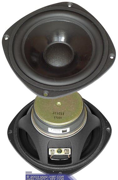 19-милиметровый ВЧ динамик с тканевым куполом используется в Menuet II такой же, какой мы видели и в Scepter'е, а вот диффузор НЧ/СЧ драйвера имеет не только иной диаметр (всего-лишь 10 см), но и изготовлен из другого материала — из полимера. Судя по маркировке, динамик определённо имеет отношение к Vifa — известному датскому производителю драйверов для АС. Вполне возможно, что эти динамики были разработаны специально для DALI компанией Vifa как ОЕМ-продукт, ведь на самом динамике не указан производитель — только индекс модели и страна изготовления. А уж DALI, по крайней мере, всегда ставит свой логотип на драйвере.