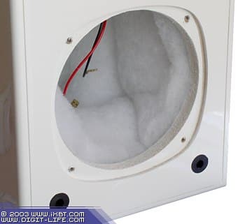 Внутреннее убранство Menuet II очень напоминает ситуацию со Scepter. Правда, синтепоновый звукопоглотитель теперь не заполняет практически весь объём корпуса, однако его по-прежнему немало. Из-за применения толстых стенок корпуса, внутренние переборки также не понадобились. При постукивании по корпусу АС можно услышать лишь очень негромкий «ответ», что косвенно свидетельствует о крепком и виброустойчивом корпусе. Впрочем, это было очевидно и без постукивания.