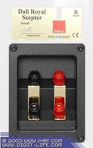 Блок терминалов позволяет осуществлять как традиционное (двухкабельное), так и четырёхкабельное подключение по схеме bi-wiring. Разумеется, возможность использовать коннекторы типа banana здесь присутствует.
