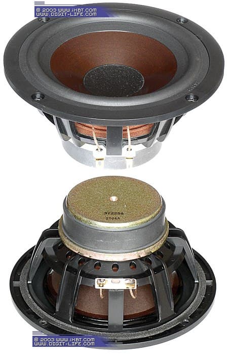 | Динамические излучатели | НЧ/СЧ: конический диффузор (125 мм в диаметре) из армированой бумаги с пропиткой |