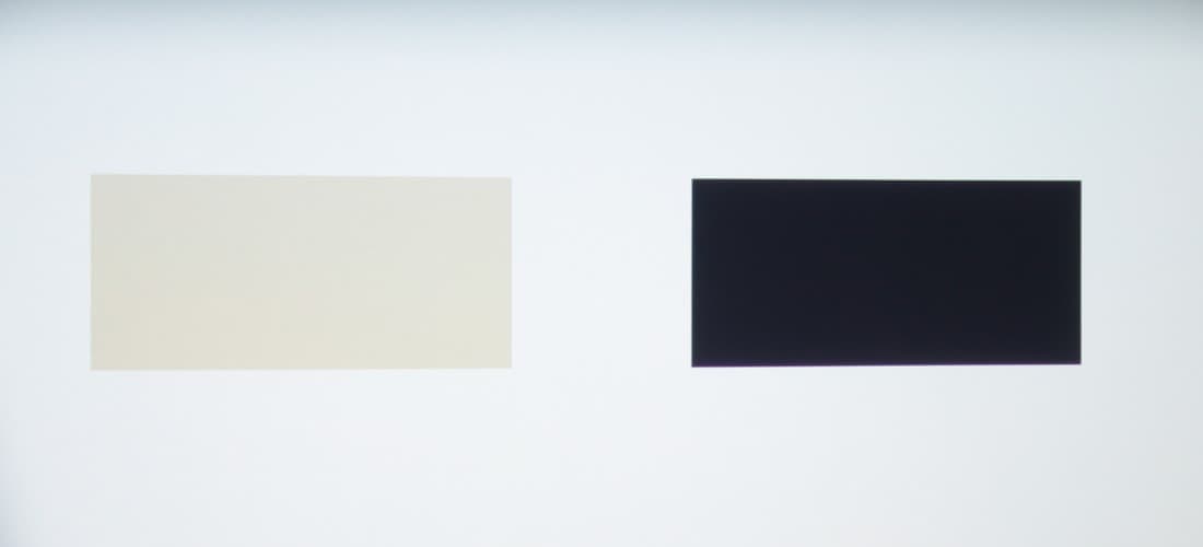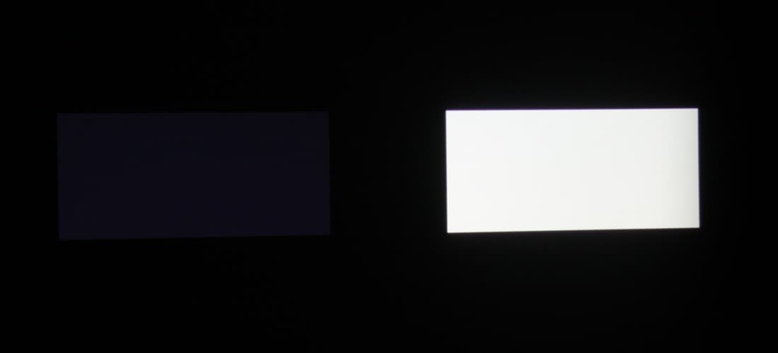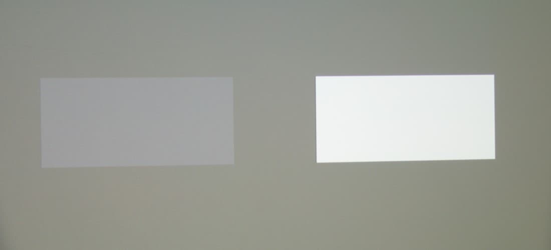 Максимальный световой поток немного меньше паспортного значения (заявлено 1300 лм). Равномерность освещенности очень хорошая. Контрастность высокая. Также мы измерили контрастность, измеряя освещенность в центре экрана для белого и черного поля, т.н. контрастность full on/full off.