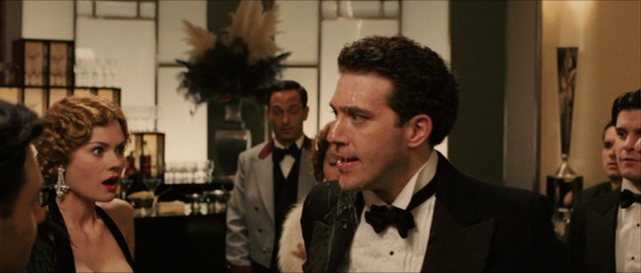Второй пример. Сцена в ресторане. Мэй, возмущенная хамскими речами Макса Баера (сознательно провоцирующего скандал, который Брэддоку как раз не нужен) выплескивает ему в лицо стакан вина. Макс обращается к окружающей публике: