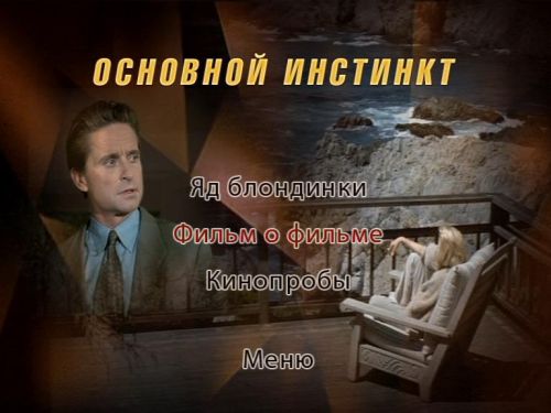 Русскоязычное меню дисков с фильмами анимировано и озвучено. Только с дизайном здесь, как всегда, проблемы: если нарезка из первого «Инстинкта» отрицательных эмоций не вызывает (хотя и восхищаться здесь нечем), то меню второго фильма — верх безвкусицы.