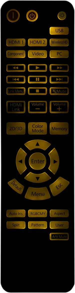 Включение и выключение разнесено на разные кнопки, и при выключении подтверждения не запрашивается, но соответствующую кнопку случайно нажать непросто, так как она поменьше и утоплена в корпус пульта. Стереоскопический режим мы не тестировали, но для проверки включали. Оказалось, что, как и предупреждает производитель, в этом режиме проектор на команды с пульта реагирует неуверенно, так как ИК-синхросигналы (излучатель встроен в проектор) мешают работе ИК-приемника.