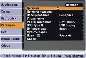 В качестве заставки можно использовать изображение, захваченной с помощь функции Логотип пользов. Для исключения несанкционированного использования проектора служат блокировка кнопок на корпусе проектора (параметр Блокир. управл.) и защита паролем доступа к проектору, к функции смены логотипа и/или к настройкам сети. Защита относительно стойкая: после 30 неправильных комбинаций из 4-х цифр проектор блокируется, а чтобы его разблокировать потребуется обратиться в представительство Epson. Можно установить режим автоматического включения при подаче питания.