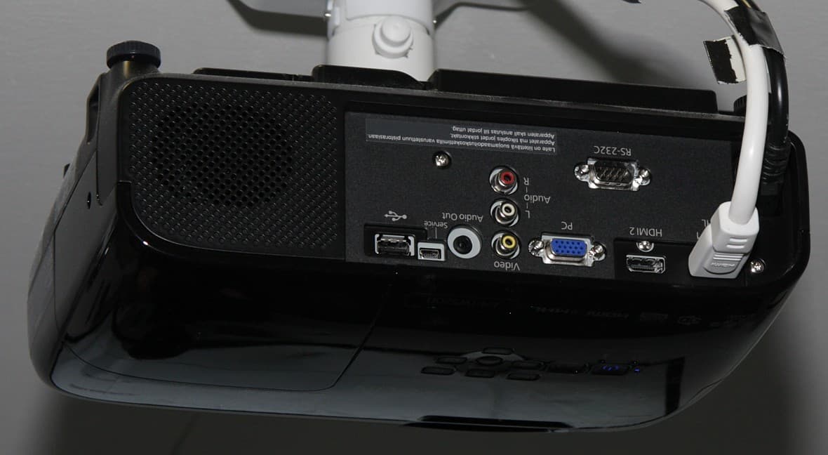 Для подключения к источникам сигнала этот проектор оснащен двумя HDMI-интерфейсами, VGA-входом и RCA-разъемом для композитного видеосигнала.