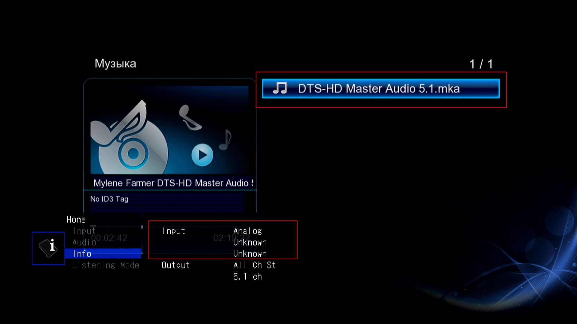 Возможно, кто-то из аудиофилов задаст вопрос: а что, если передать на ресивер один лишь HD-звук, без видеоряда? Пробовали. Результат — тот же самый, предсказуемый. Ресивер «не слышит» HD-звука, независимо от того, передаётся ли одновременно со звуком картинка или нет.