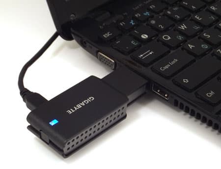 При подключении передатчика к ноутбуку следует иметь в виду, что длины прилагаемого USB-кабеля может не хватить, если свободный и доступный USB-порт расположен на другой стороне корпуса ноутбука. На предыдущем фото видно, как передатчик, вставленный в HDMI-порт нетбука, перекрыл своим корпусом доступ к USB-порту, находящемуся, как назло, впритык к HDMI. Пришлось тянуть USB-кабель к другой стороне нетбука, где имеется два свободных USB-порта. В итоге провод оказался натянутым до состояния «только-только». Впрочем, с медиаплеерами такая проблема вряд ли возникнет, ведь большинство из них спроектированы без оглядки на компактность. Да и в любом случае, ничто не мешает использовать более длинный кабель.