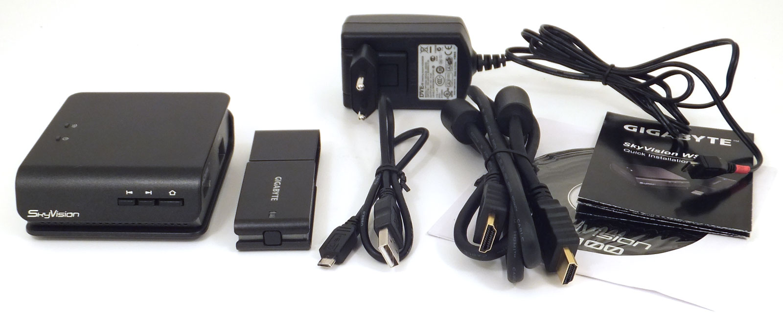Процесс подключения устройств незатейлив: в HDMI-порт источника видеосигнала требуется вставить передатчик, запитав его прилагаемым кабелем от порта USB. Здесь могут быть варианты: можно использовать не только USB-порт ноутбука или какого-то другого устройства. Вполне подойдёт и обычный сетевой адаптер, и даже переносные батареи, выдающие ток нужных параметров. Более того, если у какого-то устройства имеется USB-порт, предназначенный для подключения внешних накопителей, то можно не беспокоиться — передатчик, запитанный от этого порта, обязательно заработает. Мы в этом убедились, испробовав работу устройства на нескольких разных медиаплеерах с USB-портами, на ПК и нетбуке.