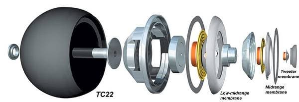 iO System от Сabasse. В этой бюджетной линейке используются двухполосные АС с твиттером DOM25 и 13 см вуфером 13F15. В топовых же моделях громкоговоритель имеет три полосы. Конструкция трехполосного громкоговорителя показана ниже. | ![]() |
