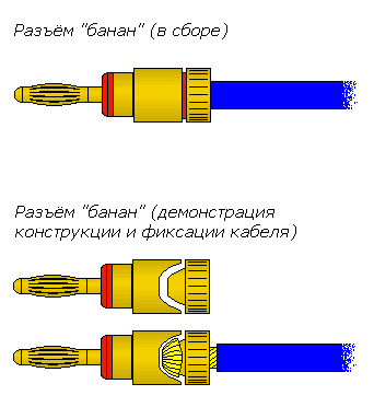 Наиболее частый вопрос — «А нужны ли мне коннекторы вообще? Может обойтись только кабелем?». Попытаюсь ответить. Итак, если коннектор «банан» выполнен таким образом, что оголённый конец кабеля зажимается поворотной шайбой, то толку (с точки зрения улучшения контакта) от такого коннектора минимум, скорее один только вред. Зато с эстетической точки зрения — самое то. Но всё равно, подобная конструкция «банана» весьма неудачна.