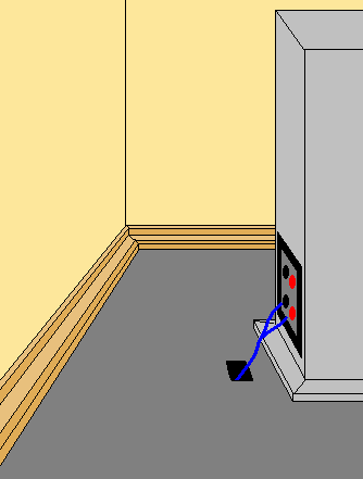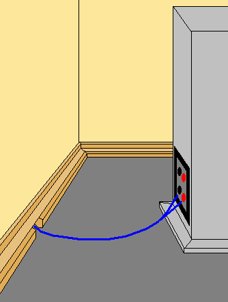 1. Банальная вырезка отверстия в плинтусе и вывод кабеля через это отверстие. Плюсы очевидны: простота в реализации данного типа вывода. Но и минусы присутствуют: если вы захотите убрать колонку, то кусок кабеля, торчащий из плинтуса, убрать уже не получится.