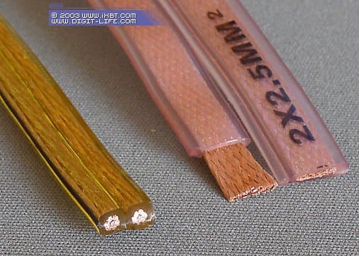 - «обыкновенный». Это привычный кабель с круглыми в сечении проводниками, состоящими из одной, нескольких или множества жил (на фотографии слева). Производят подобные кабели сотни компаний. Цена может колебаться от $0.5 до сотен или тысяч долларов за метр — зависит от качества кабеля, его сечения и, конечно же, «брэндовости» производителя.