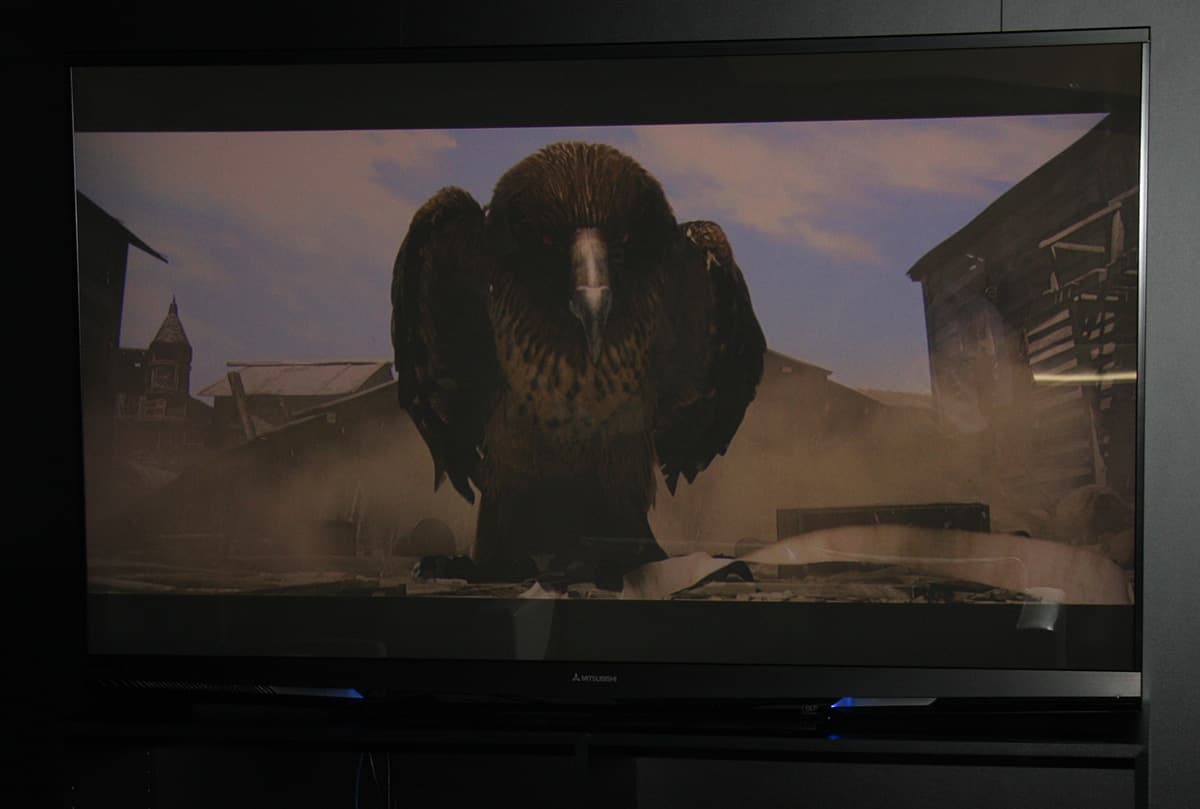 На большом экране 3D-картинку показывал обновленный шестиматричный (из-за двух оптических блоков — по одному на каждый глаз) SXRD-проектор CF3DA (яркость 2500 лм, два HDMI 1.4a и функция преобразования 2D в 3D).