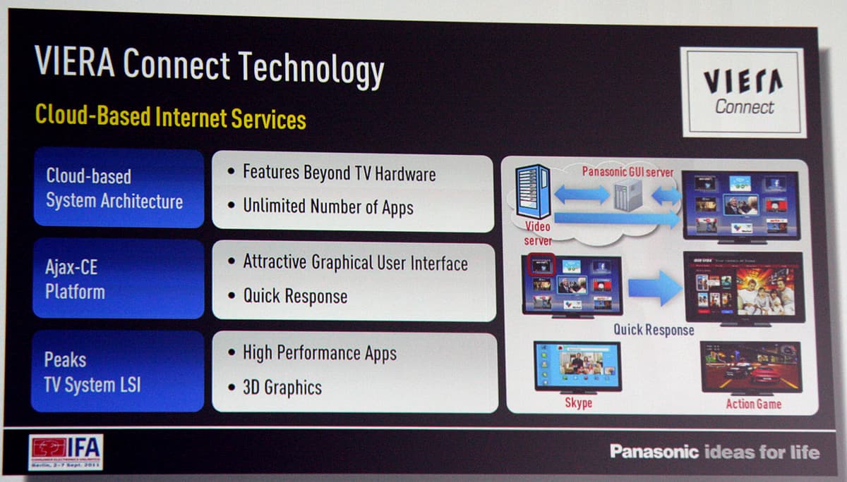 Связующим звеном в Smart Viera является технология Viera Connect, локально и глобально связывающая устройства, людей ими пользующихся, и предоставляющая доступ к приложениям и сервисам.