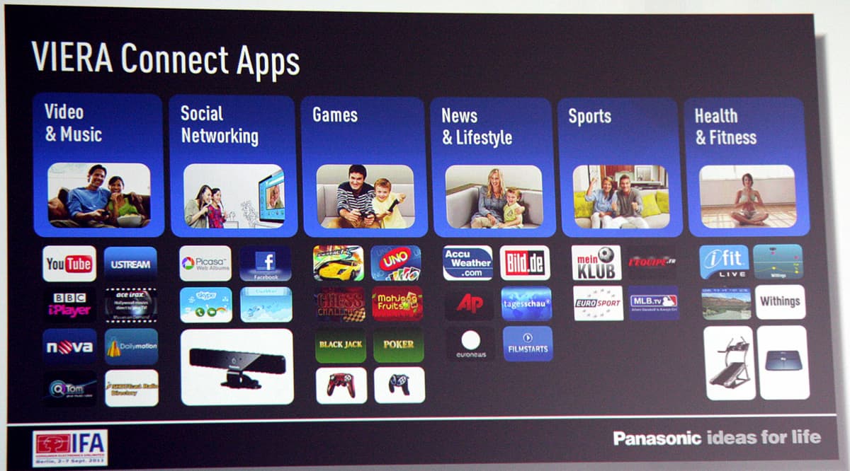 С осени этого года Viera Connect доступна и на 3D Blu-ray-плеерах, рекордерах и системах домашнего кинотеатра Panasonic. Для Viera Connect уже сейчас есть много приложения и сервисов, в том числе и локализованных: