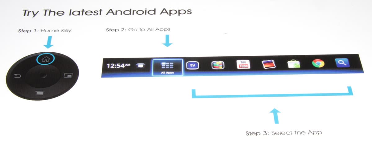 В добавление к уже имеющимся приложениям пользователь этого телевизора может установить оптимизированное для телевизоров приложение из магазина Android Market.