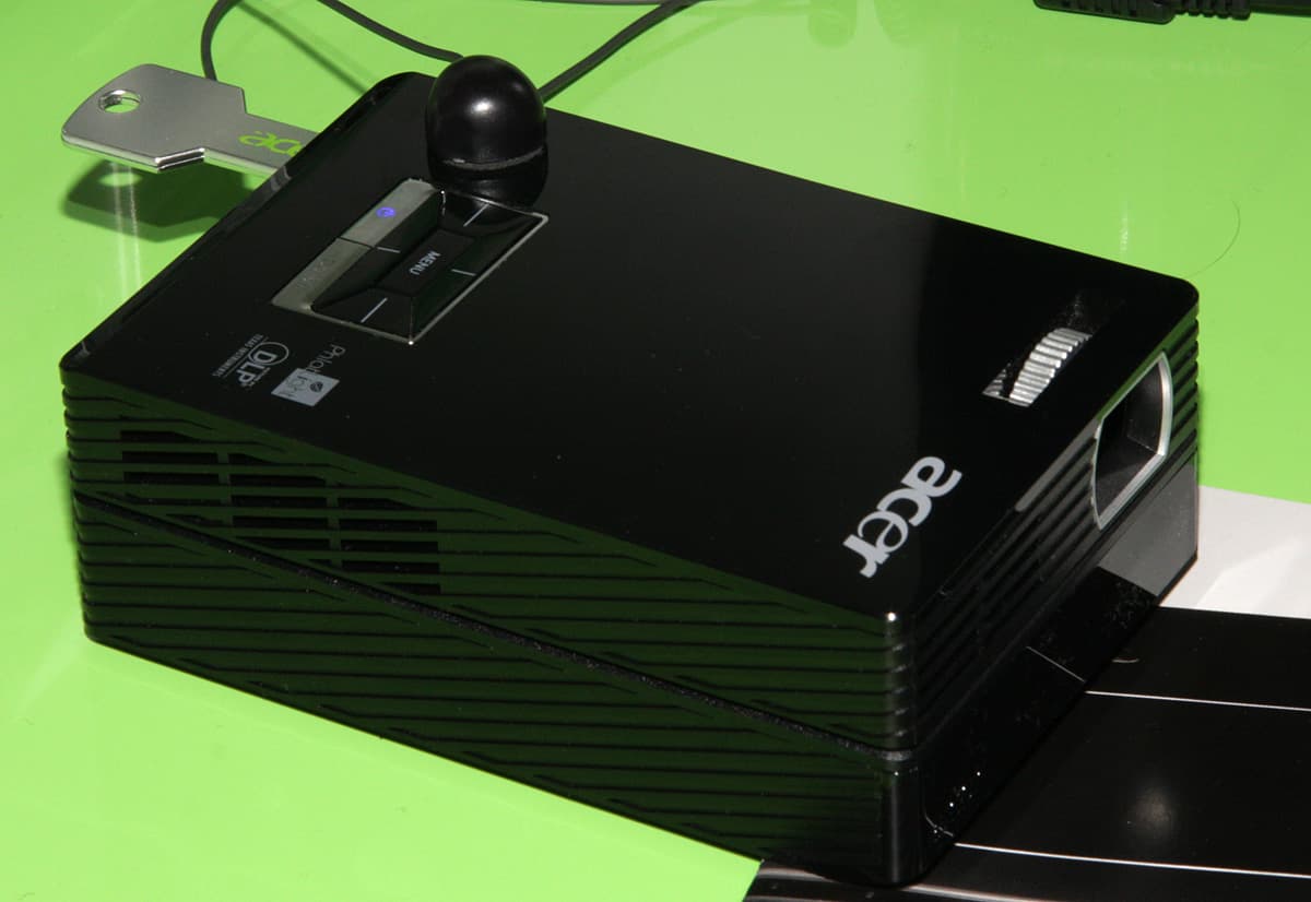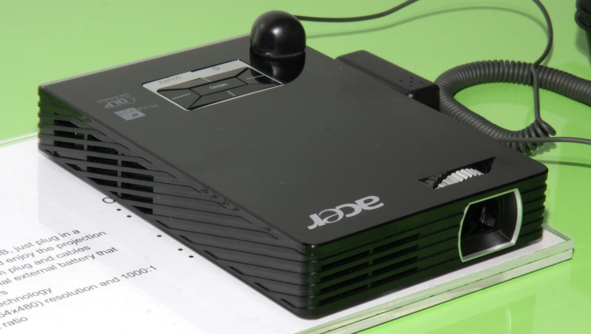 Компания Acer показала несколько LED-проекторов от пико-проектора C20 (20 лм, 166 г, 854×480, до 2 часов работы от встроенной батареи),