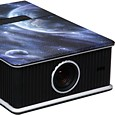 Внешне проектор напоминает книжку-переросток. Основные элементы корпуса изготовлены из черного пластика с матовой поверхностью, кроме серебристой окантовки и первой отличительной особенности — сменной верхней панели. По желанию клиента проектор может поставляться с матово-черной, глянцево-черной, матово-белой или декорированной под ореховое дерево верхней панелью, кроме того, есть вариант панели, предназначенной под индивидуальную раскраску. У нас на тестировании был образец с панелью, раскрашенной по космическим мотивам.