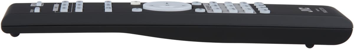 Пульт не очень большой. Его корпус изготовлен из пластика с матовым покрытием типа «Soft touch», на ощупь напоминающим резину. Пульт удобно ложится в руку. Кнопки некрупные, подписи контрастные, но немного мелковаты. Есть достаточно яркая и равномерная светодиодная подсветка, включающаяся небольшой круглой и фосфоресцирующей кнопочкой LIGHT. Включение и выключение проектора разнесены на две разные кнопки.