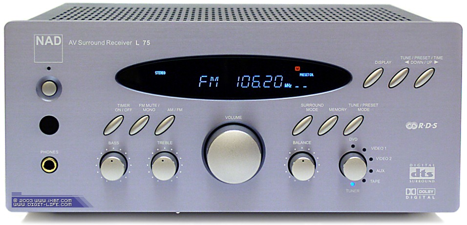 Настройки и функциональные возможности можно назвать вполне традиционными, но достаточными для большинства пользователей. Здесь есть всё необходимое для корректной настройки звука в театре, включая 2 DSP режима (stereo3, Hall) и механический темброблок (НЧ, ВЧ). В плане коммутации — только самое необходимое. Нету ни многоканального входа, ни коммутации компонентного видеосигнала. Однако, в данном случае мы не склонны рассматривать эти факты как серьёзный недостаток, поскольку большинство выбравших L-75, почти гарантированно будут использовать его в паре с DVD-плером L-55, дабы соблюсти единый дизайн. А так как L-55 не поддерживает воспроизведение ни DVD-Audio, ни SACD-дисков, то и многоканальный вход ресивера будет попросту не востребован.