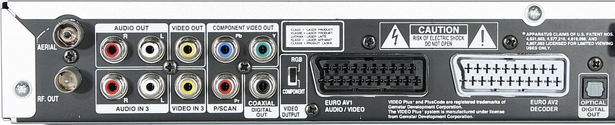 Композитный видеосигнал присутствует как в разъеме SCART AV1, так и в отдельном RCA-разъеме. Переключение между компонентным и SCART-RGB режимами производится вручную небольшим переключателем. Теплый воздух выдувается из рекордера небольшим вентилятором.