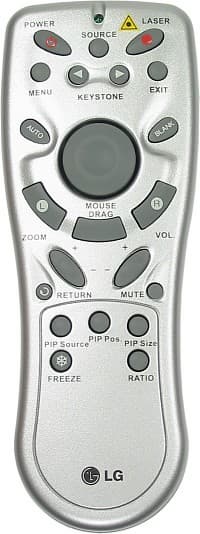 Кнопки-качалки и круглая кнопка-джойстик не вызывает никаких затруднений при работе с ними. Кнопка включения лазерной указки (LASER) расположена в самом дальнем углу и очень тугая. Подключение проектора к компьютеру стандартным USB-кабелем позволит управлять курсором мыши с помощью пульта ДУ. Кнопки эмуляции нажатия правой и левой кнопок мыши расположены в подходящем месте, а между ними — кнопка фиксации нажатия на левую кнопку, эта функция значительно облегчает операции drag&drop.