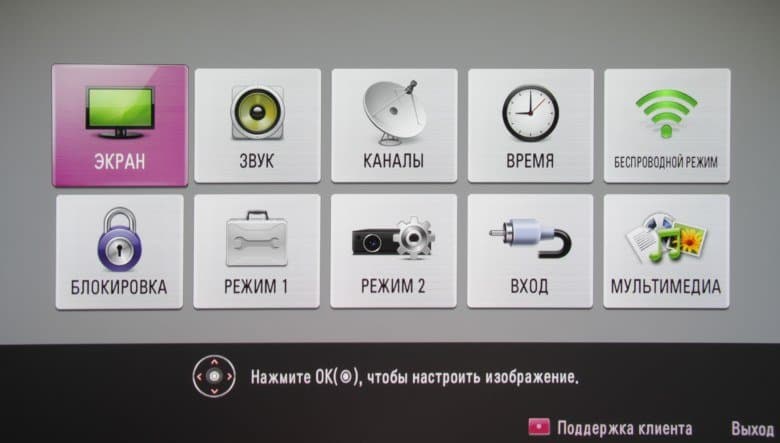 При этом следующий/предыдущий параметры выбираются стрелками вниз и вверх. Есть русская версия экранного меню.