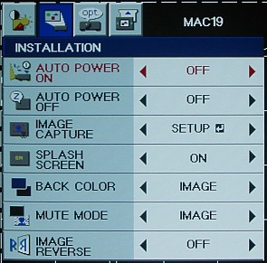 Самая интересная дополнительная функция — это возможность захватить изображение (пункт IMAGE CAPTURE), проецируемое с компьютера, и использовать его в качестве заставки при включении проектора, в отсутствие сигнала или в режиме MUTE.