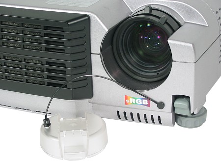Две передние регулируемые по высоте пластмассовые ножки расположены немного несимметрично относительно корпуса, поэтому оба фиксатора на ощупь находятся не сразу. Нижняя часть ножек с резиновой таблеткой всегда параллельна поверхности, на которой стоит проектор, так как закреплена на шарнире. Задние ножки в небольших пределах тоже регулируются по высоте. Объектив глубоко утоплен в корпус, что является дополнительной защитой от его повреждения, например при транспортировке.