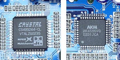 Декодированием многоканального звука традиционно занимается чип от Cirrus Logic (CS493264-CL). Он способен декодировать все известные форматы цифрового многоканального 5.1-звука, а также работает с DPLII и понимает MP3. Цифро-аналоговым преобразованием занимается 24бит/96кГц кодек AK4586 VQ от AKM.