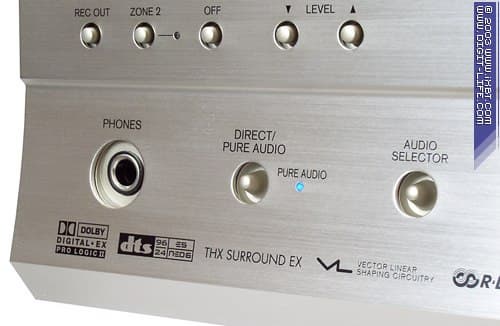 Что касается той таинственной кнопочки, то оказалось, что отвечает она за активацию весьма интересной «фичи», которой не было в 601-й модели. Речь идёт о режиме pure audio (можно перевести как «чистое аудио»). Точнее, кнопка заведует управлением сразу двумя режимами, однако первый не столь интересен, ибо является традиционным «выключателем» темброблока и обработок звука, вроде DSP-эффектов (режим direct). А вот второе нажатие на кнопку как раз и включает вышеупомянутый pure audio. В этом случае все режимы обработки по-прежнему отключены, но, плюс к этому, обесточиваются все источники помех, потенциально влияющие на аудиотракт (отключается дисплей аппарата и все цепи коммутации видеосигнала), а аудиосигнал идёт максимально коротким путём. Что касается описания «максимально короткого пути», то точную информацию по этому поводу нам найти не удалось.