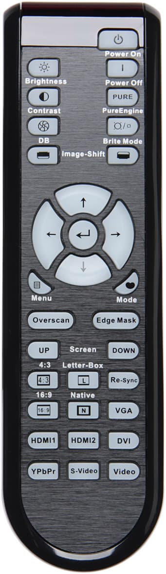 Два пульта позволили разработчикам оставить на самом проекторе всего одну кнопку. Основной пульт удобно ложится в руку, кнопок на нем, пожалуй, даже избыток. Кнопки некрупные, подписи к ним мелковаты, однако блоком курсорных кнопок пользоваться удобно. Есть достаточно яркая и равномерная светодиодная подсветка, включающаяся при нажатии на любую кнопку.