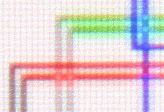 Для тестирования DVI-подключения мы использовали кабель-переходник с DVI на HDMI. Проектор стабильно работает в самом правильном для него разрешении — 1920x1080 при 60 Гц. Качество изображения хорошее, пиксели выводятся 1:1. Белое и черное поля выглядят равномерными и не содержат цветовых разводов. Бликов нет. Геометрия идеальная. Оттенки на шкале серого различаются от 0 до 255. Шкала серого равномерно серая. Хроматические аберрации объектива практически отсутствуют, даже в углах ширина цветной каймы не превышает 1/3 пикселя. При выводе черных линий видна слабая тень толщиной в один пиксель рядом с линией, а цветовая четкость меняется через один пиксель: для четных (условно) она высокая, для нечетных низкая.