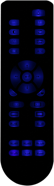 Корпус пульта изготовлен из пластика с черной матовой поверхностью. Панель с кнопками имеет износостойкую накладку из пластика с фактурой под неполированный металл. Кнопки изготовлены из полупрозрачного резиноподобного материала. Пульт удобно ложится в руку, кнопок на нем, относительно немного, они некрупные, подписи к ним мелковаты, однако блоком курсорных кнопок пользоваться удобно. Есть достаточно яркая и равномерная светодиодная подсветка, включающаяся при нажатии на любую кнопку.