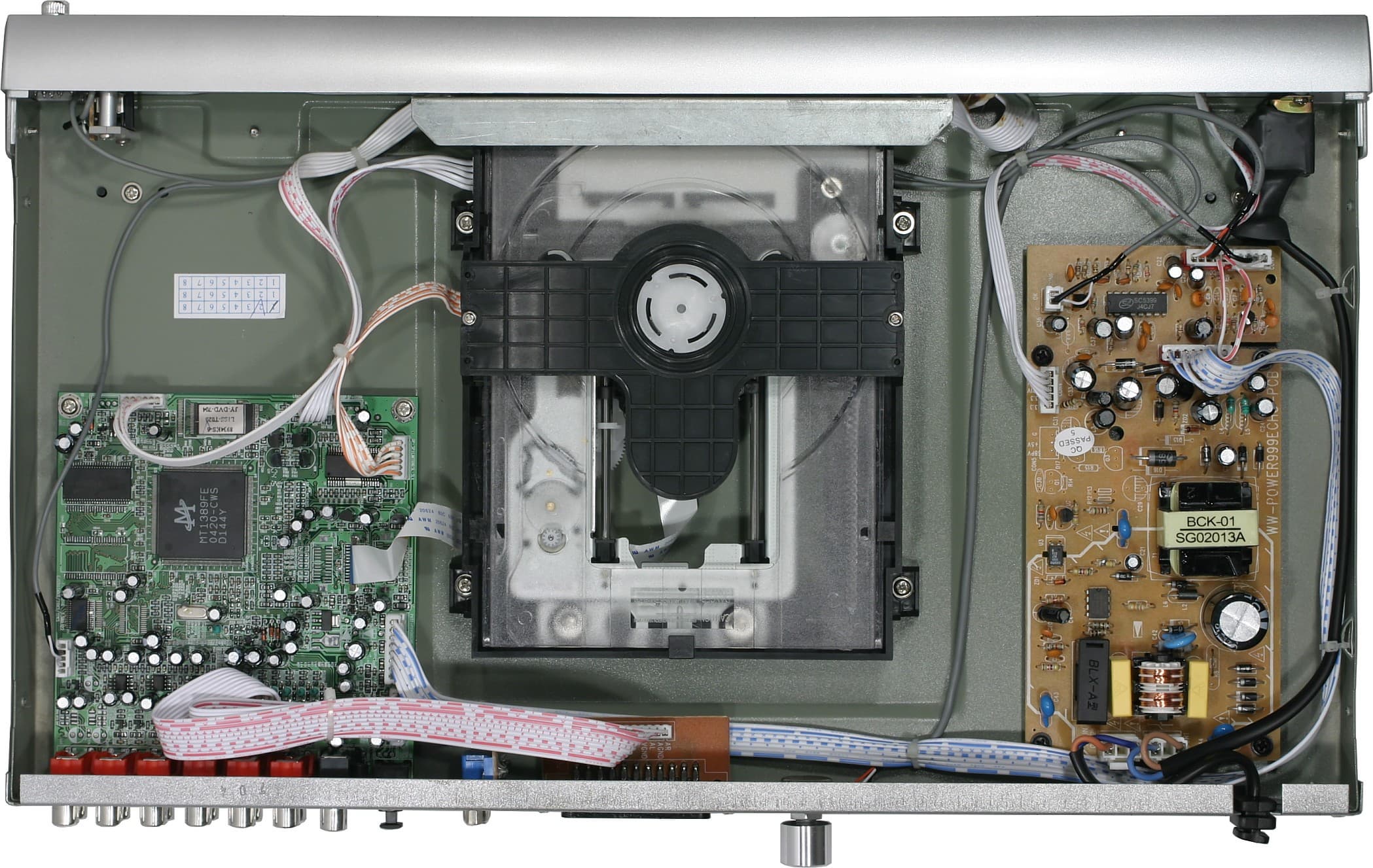 Компоновка обычная: блок питания и главная плата далеко разнесены, а между ними находится DVD-привод. Практически за все функции отвечает чип MediaTek MT1389FE.