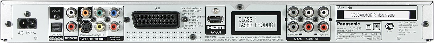 Плеер Panasonic DVD-S52 удивляет функциональной насыщенностью. Внешний вид плеера и стиль оформления графического интерфейса лаконичны и аккуратны. Все элементы, обеспечивающие взаимодействие с пользователем, отличаются хорошей эргономичностью. Звук и картинка — превосходные. Ничего другого не остается, как придираться к мелочам: в случае MP3 не работает переход на время, нет слайд-шоу под музыку, при воспроизведении MPEG4 не работают некоторые весьма обычные функции и т. д.