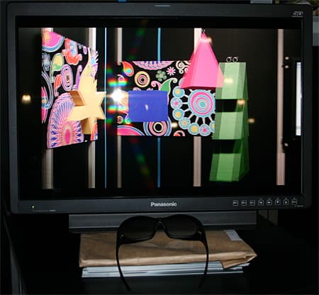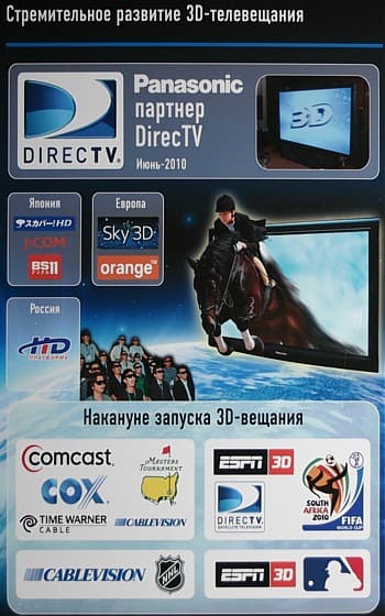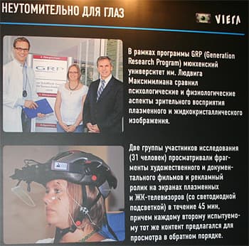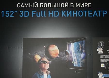 помимо 3D-кинотеатра с громадной панелью можно было оценить в нескольких закутках. В одном из которых для сравнения стоял ЖК-телевизор конкурентов. Впрочем, заметность паразитных контуров на ЖК-телевизоре, возможно была связана и с тем, что для просмотра использовались затворные очки Panasonic, синхронизированные от стоящего рядом плазменного ТВ Panasonic, а не комплектные к этому ЖК-телевизору очки.