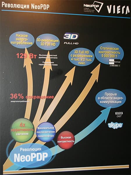 NeoPDP — новые плазменные технологии. Термин NeoPDP обозначает, скорее, текущую инновационность плазменных дисплеев от Panasonic, чем конкретную технологию. В настоящей реализации NeoPDP — это увеличенная эффективность свечения, уменьшенное время послесвечения люминофора и высочайшая контрастность.