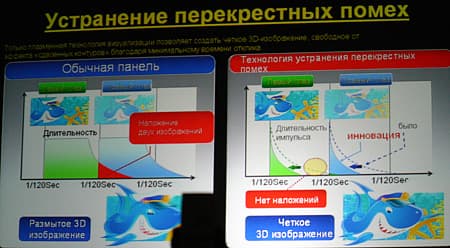 Эти инновации позволяют в режиме вывода 120 кадров/с полностью разделять смежные кадры, в результате на стереоскопическом изображении картинка не имеет перекрестных контуров.