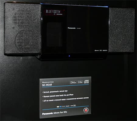 Среди других, представленных на мероприятии устройств, хочется отметить настенную микросистему SC-HC40 с отсеком для iPod/iPhone, которая помимо дизайна отличается поддержкой Bluetooth.