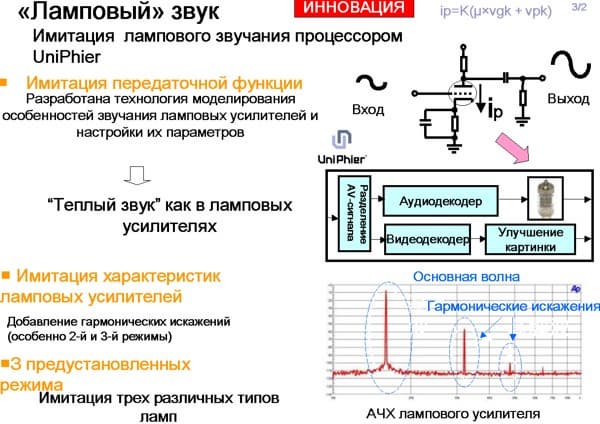 Кроме задачи точной передачи звука, есть и задача внести специальные искажения, чтобы придать звучанию некоторые особенности. Так в новых плеерах Panasonic реализована имитация лампового звучания.