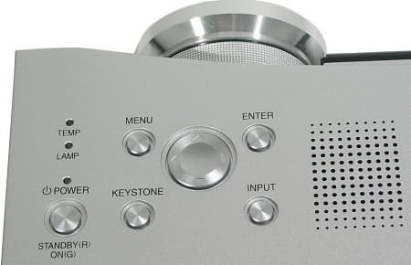 У проектора только один ИК-приемник, расположенный на передней панели, но для домашнего использования это не является особым недостатком, так как даже на севших батарейках устойчивая связь наблюдалась, когда от пульта до экрана и от экрана до проектора в сумме было 7 м.